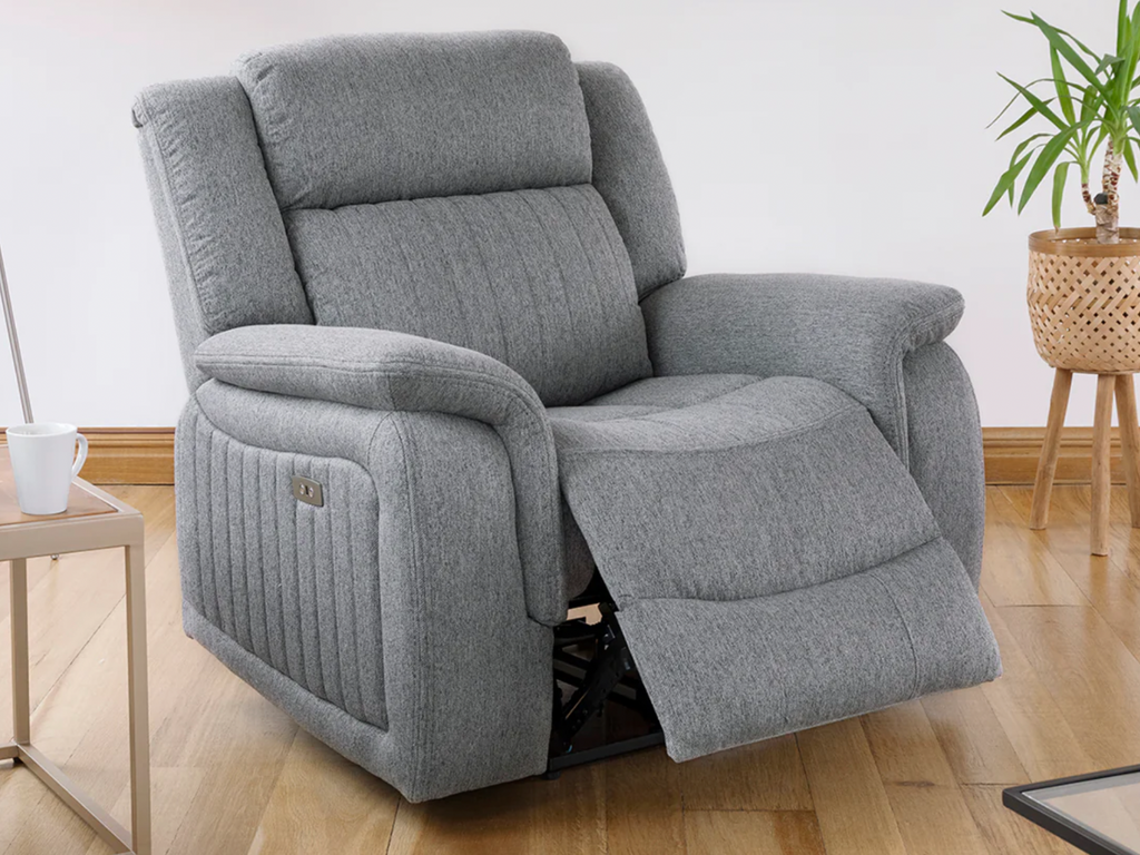 Cosy corner, redefined. Indulge in solo bliss with this plush retreat. Luxurious fabric, pillow-top armrests, and a smooth electric Linden recliner grey collection invites you to unwind and recharge. Your perfect reading nook awaits.