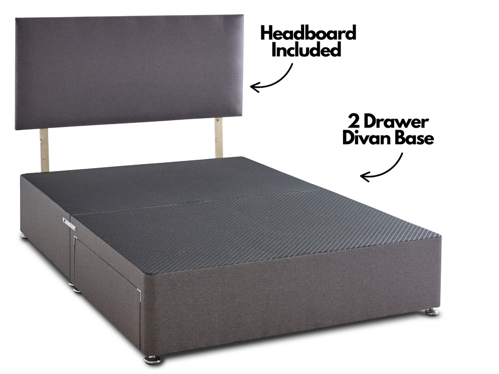 The Evesham 2 Drawer Divan Set deal includes a 1000 pocket sprung mattress which is dual sided, 2 drawer divan base and matching headboard in a range of colours. Delivery time is between 2/4 weeks. A choice of colours is available to choose from in store.