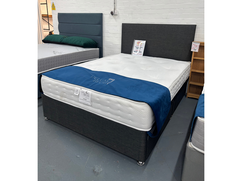 Standard Double Divan Base with 2 drawers & 24inch Headboard & 1000 pocket double sided mattress (Medium Feel)