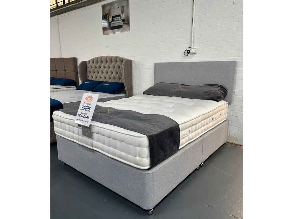 4ft6 Standard Double Divan Set with 1000 Pocket Natural Mattress. Mattress is hand side stitched and is double sided. The premium quality mattress is filled with Wool, Silk & Cashmere fillings making this a quality sleeping surface, Medium Feel.