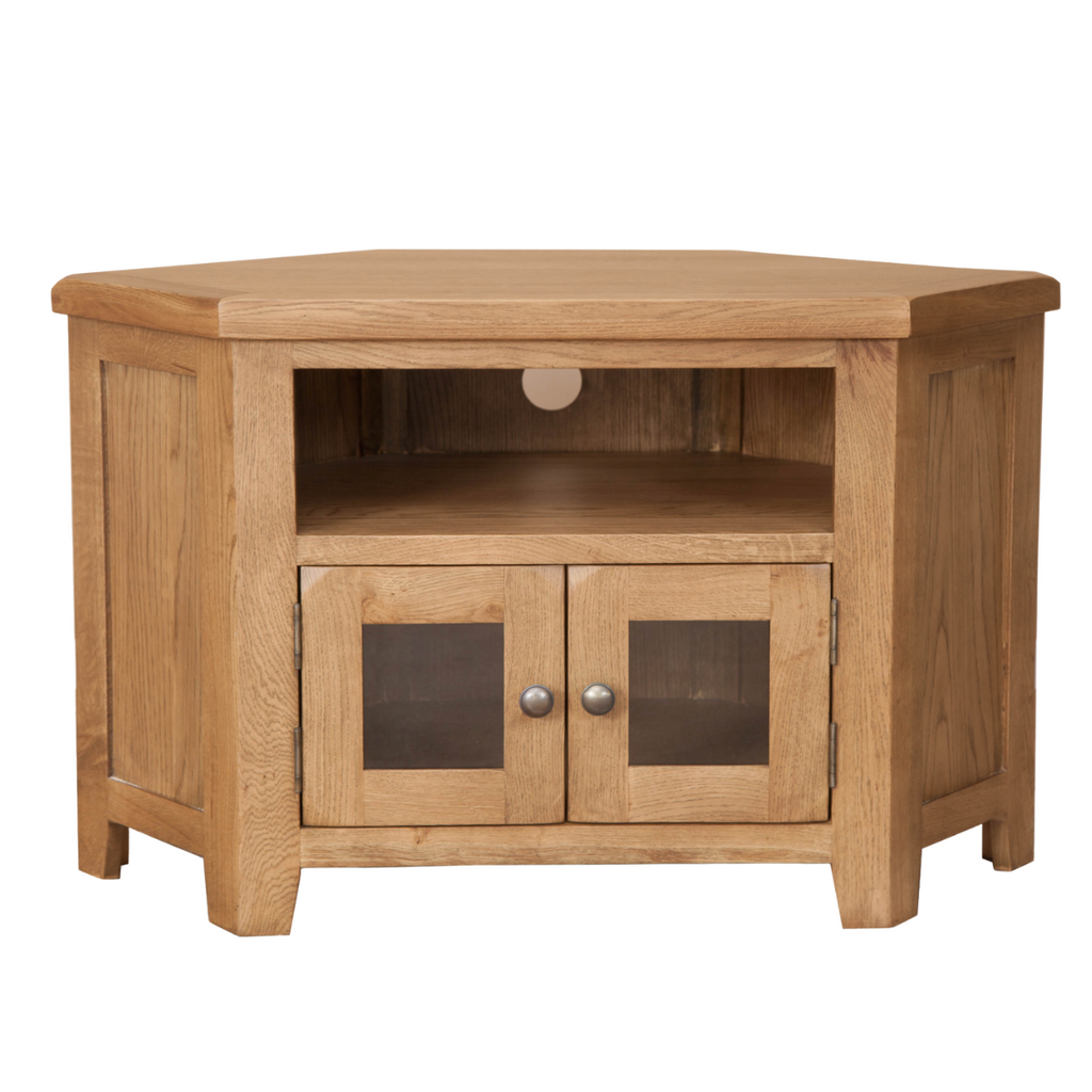 Country Oak Glazed Corner TV Unit - Oak/Oak Veneer