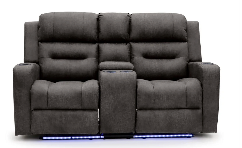 Fabric electric recliner featuring LED lights, cupholders, dropdown consoles and wireless phone charger! A fully loaded and practical take on a classic recliner design Dimensions: Length 172cm Depth 94cm Height 106cm