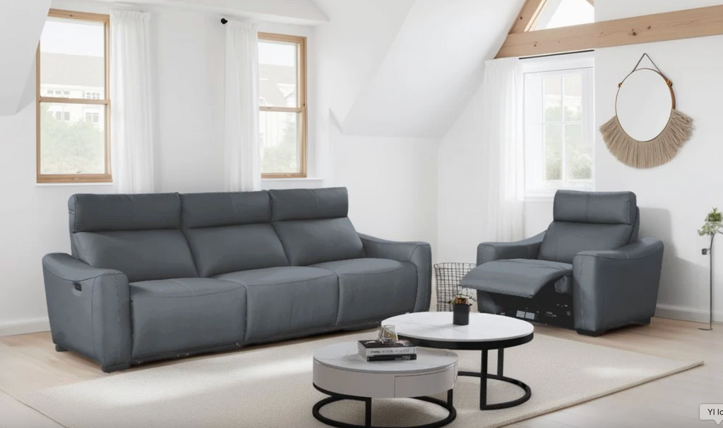Large 4 seater sofa power recliner with matching power reclining armchair.