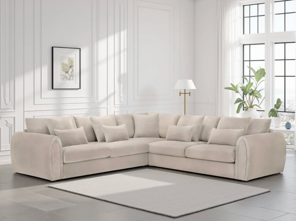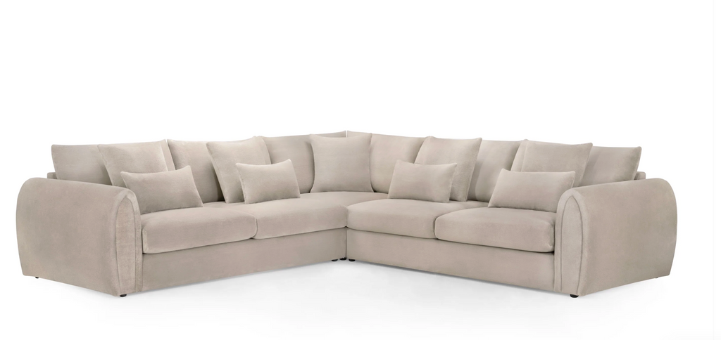 The Mirabel Sofa Mocha Large Corner offers spacious and comfortable seating, perfect for relaxing and hosting guests. The soft velvet upholstery adds a touch of luxury, while the removable seat cushions and extra comfort cushions provide ultimate comfort. Complete your living space with this stylish and functional corner sofa.
