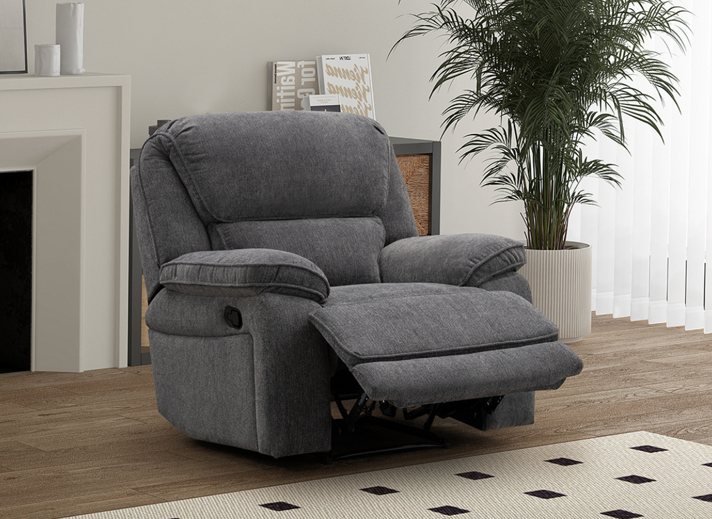 Combining eye catching wide footrests with deep filled cushions for an extremely comfortable sit, this rest easy recliner is upholstered in cosy fabric.