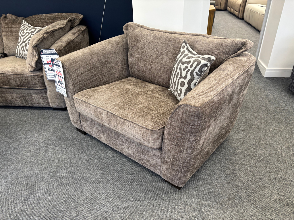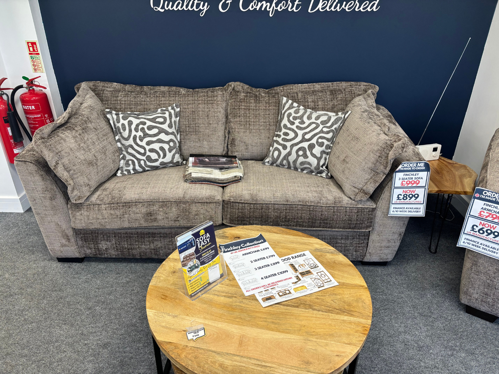 Finished in chunky Mink coloured fabric, The Finchley is a deep seated sofa that is comfortable and supportive. We have the 3 seater and armchair in stock.
