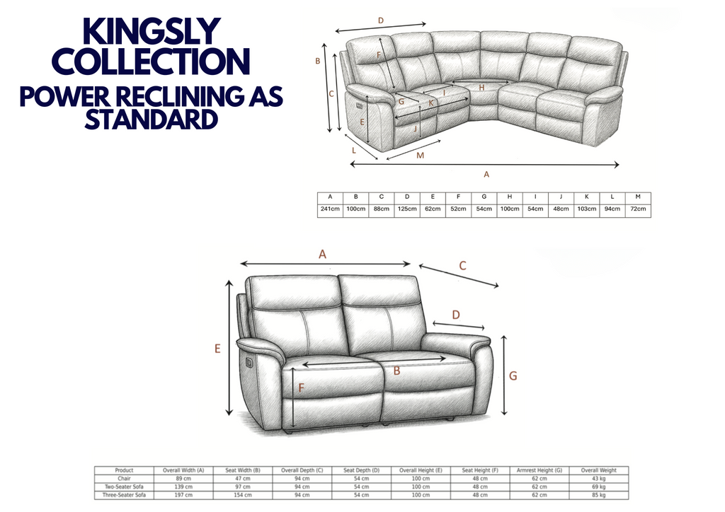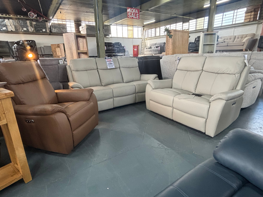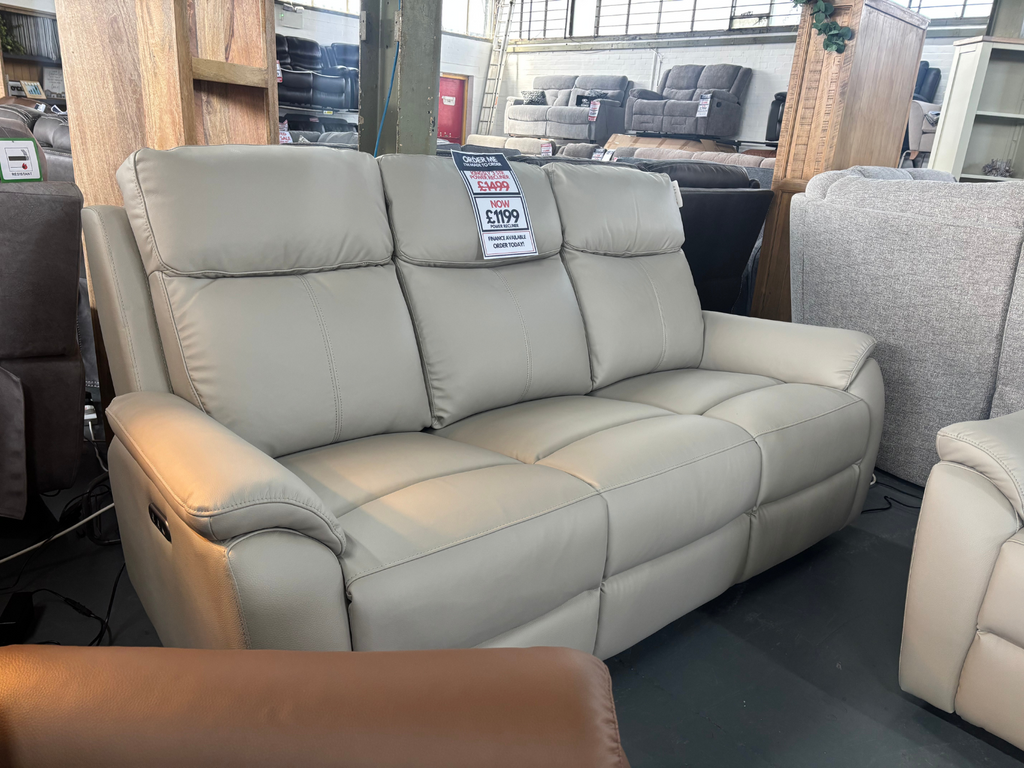 This range is all power reclining and features pocket sprung seating, high backs and padded arms. This collection comes in 3 colours - black, Light Grey & Tan Leathers.