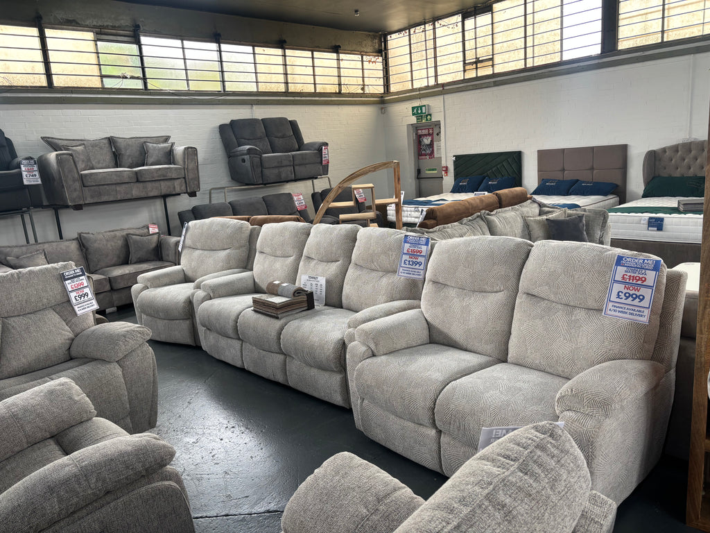 We have in Stock 1x Static 3 seater, 1x Power Reclining 3 Seater, 1x Static 2 Seater & 1 x Power Reclining Armchair