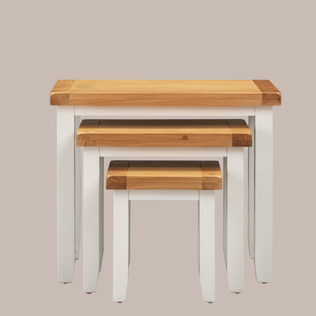 White & Oak Nest of 3 Tables - Oak/Oak Veneers
