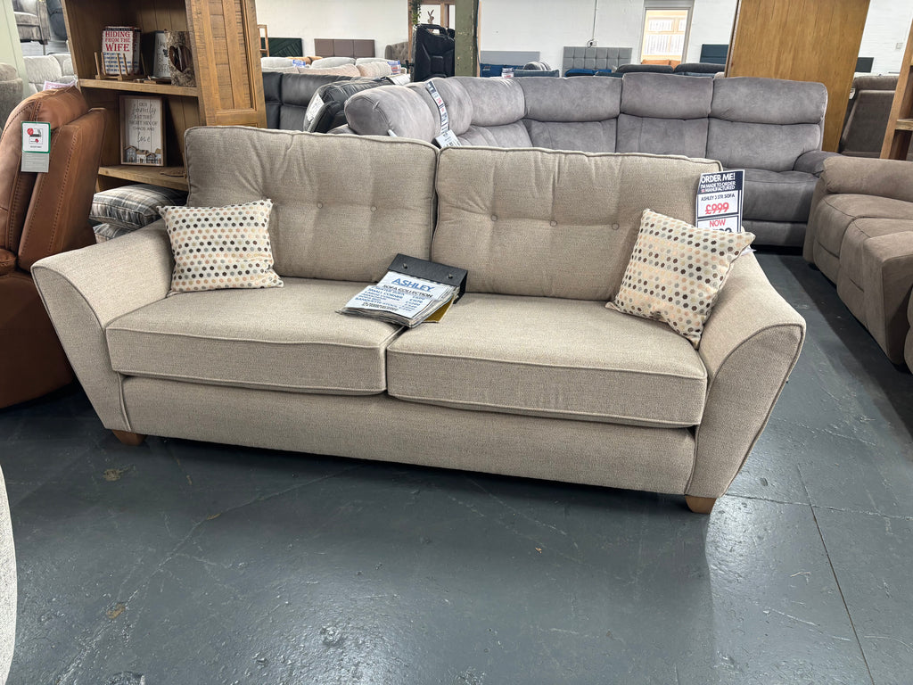 The Ashley sofa can be ordered in various sizes and fabrics.