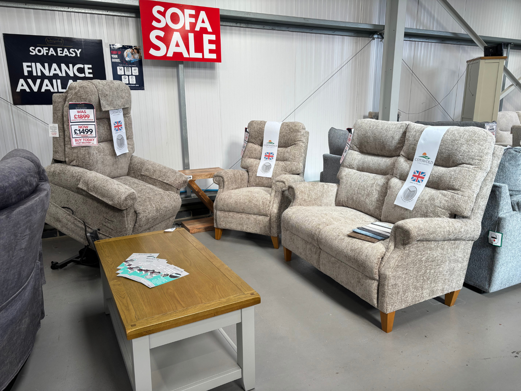 We have displayed the standard armchair with matching 2 seater sofa and matching rise and recline armchair.