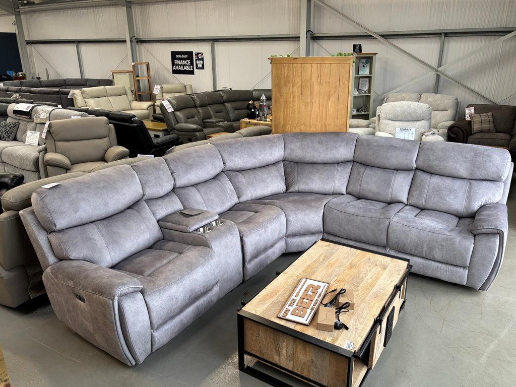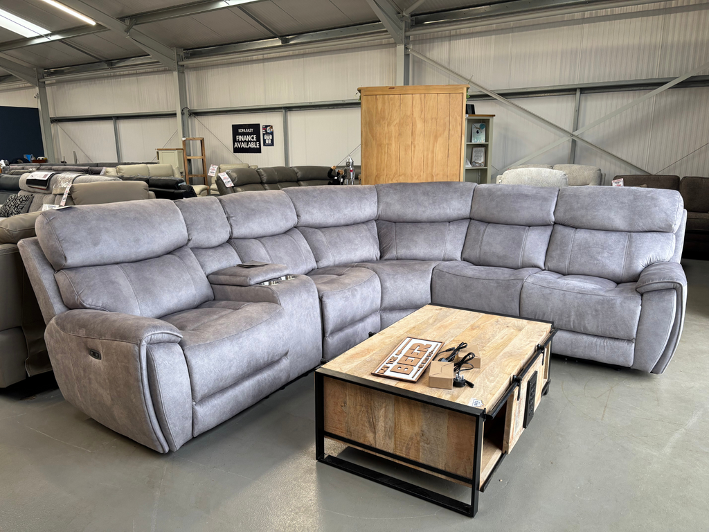 The brand new Neptune large corner sofa features 2 electric reclining seats, one at each arm end. You will also fin the drinks console with storage.