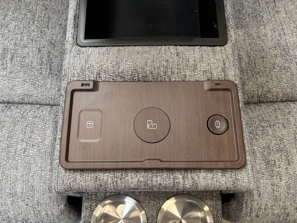 The two-seater model takes it a step further, featuring a sleek central storage console with an integrated wireless charging dock — effortlessly charge your smartphone, AirPods, and Apple Watch while keeping everything tidy and within reach.